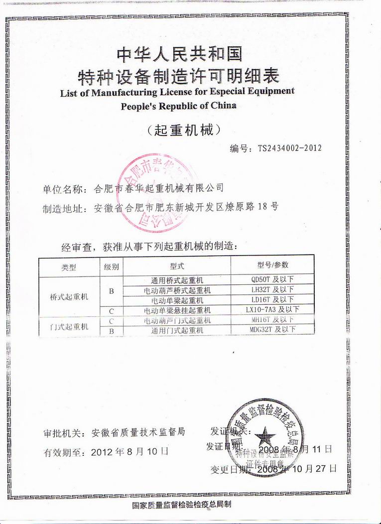 版權所有 © 合肥市春華起重機械有限公司 地址:合肥市肥東新城開發(fā)區(qū)燎原南路18號 聯(lián)系電話:0551-67709358 手機:13855153944